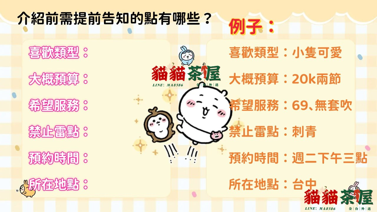 台灣外送茶 外約旅館 現金交易 可送地區:雙北 新竹 台中 彰化 高雄 台南